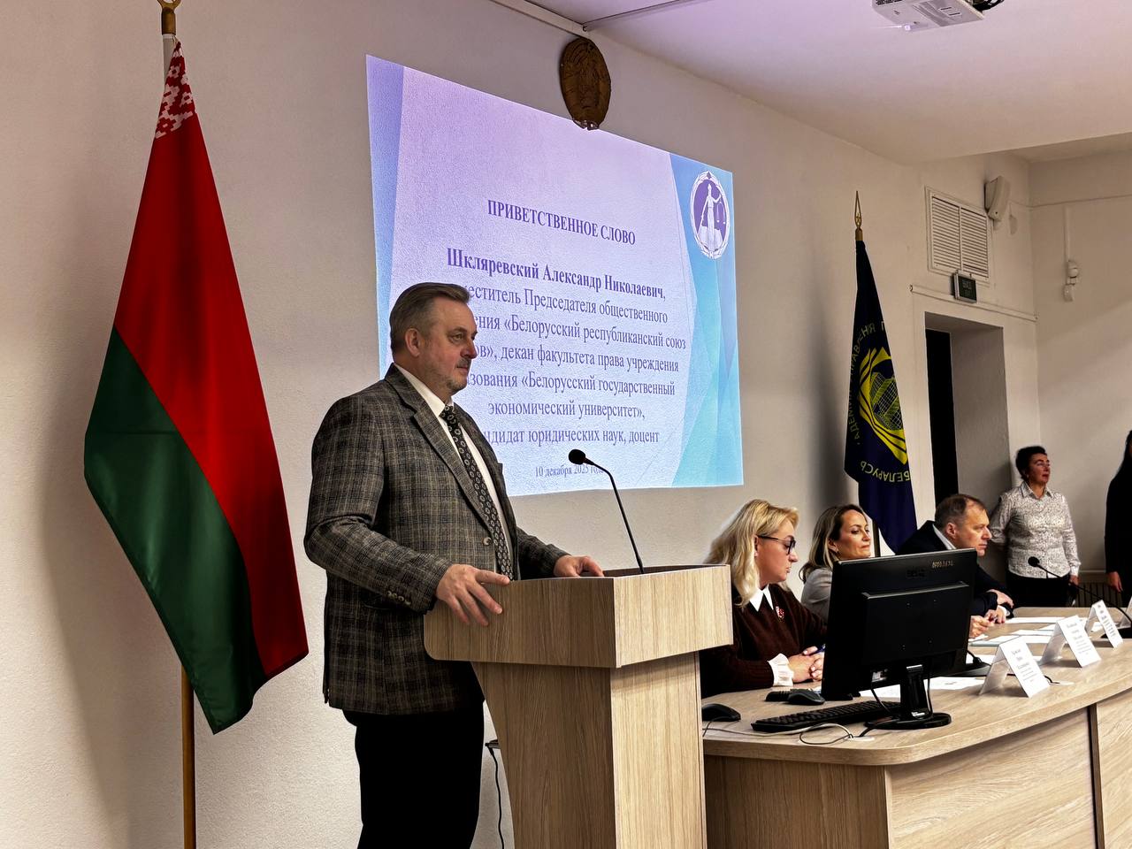 С приветственными словами к участникам выступили Ирина Орловская, Исполнительный директор общественного объединения «Белорусский республиканский союз юристов», Сергей Апанасевич, директор Института управленческих кадров Академии управления при Президенте Республики Беларусь, кандидат юридических наук; Александр Шкляревский, заместитель Председателя общественного объединения «Белорусский республиканский союз юристов», декан факультета права учреждения образования «Белорусский государственный экономический университет», кандидат юридических наук, доцент; Людмила Курило, заведующий кафедрой гражданского и хозяйственного права Института управленческих кадров Академии управления при Президенте Республики Беларусь, кандидат юридических наук, доцент.
