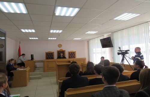 В ходе встречи ребята смогли окунуться в рабочие будни суда, приняв участие в инсценировке судебного процесса по уголовному делу (по ч. 1 ст. 212 УК Республики Беларусь). Первый заместитель председателя отметил, что ребята получают знания в основном из учебников, а на сегодняшнем мероприятии они смогли заглянуть «за кулисы» правосудия: понаблюдать за работой судьи, адвокатов, прокурора и иных участников процесса, узнать о правовых нормах и принципах правосудия в наглядной форме.