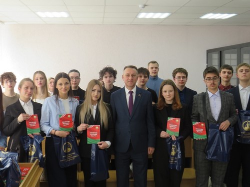 Всем собравшимся первый заместитель председателя пожелал успехов в учебе, целеустремленности и высоких достижений, вручил памятные сувениры и экземпляр Конституции Республики Беларусь.