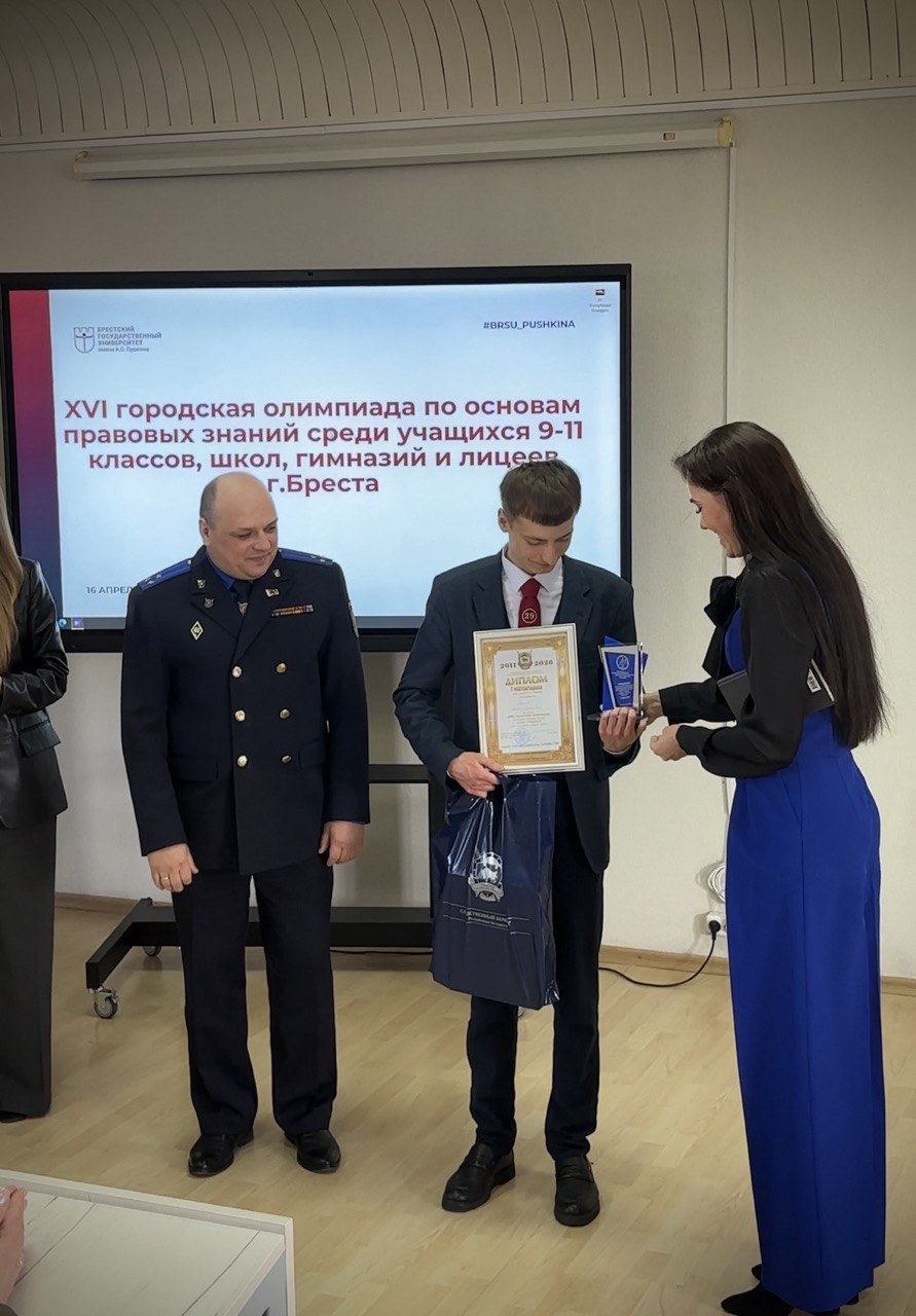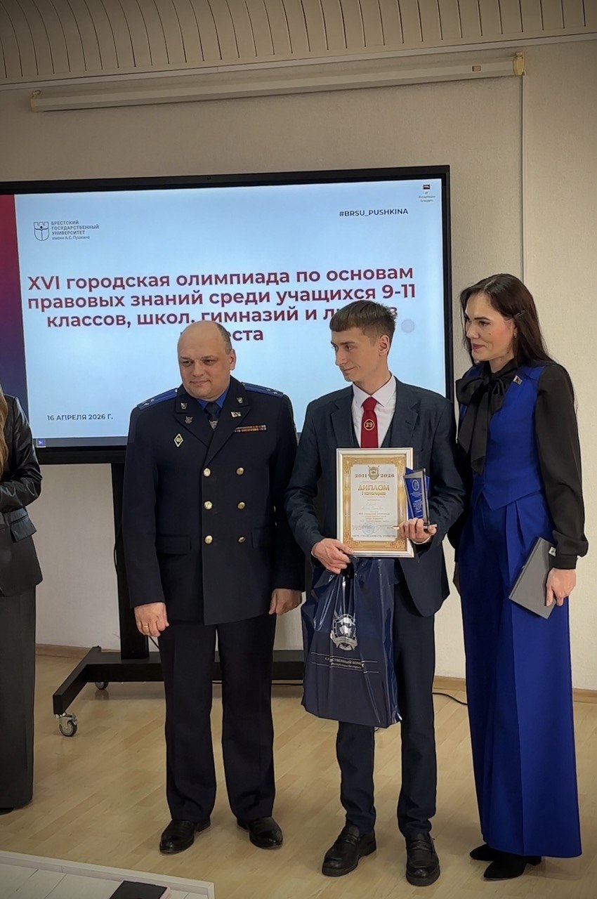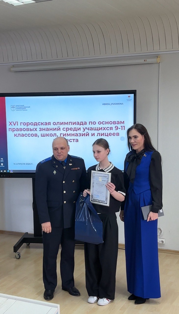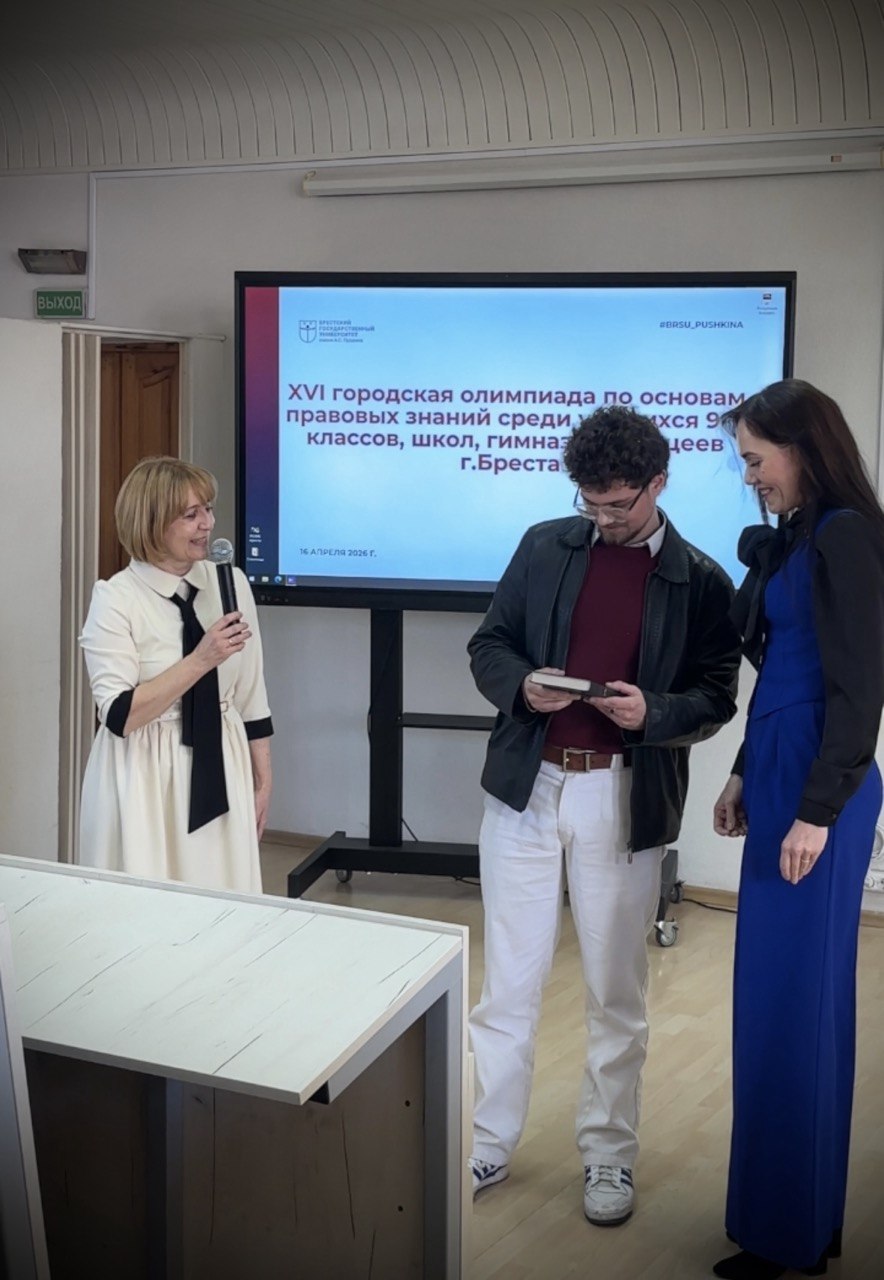 16.04.2026XVI городская олимпиада по основам правовых знаний среди учащихся 9-11 классов школ, гимназий и лицеев города Бреста прошла 16 апреля 2026 года на базе юридического факультета УО «Брестский государственный университет имени А.С. Пушкина».